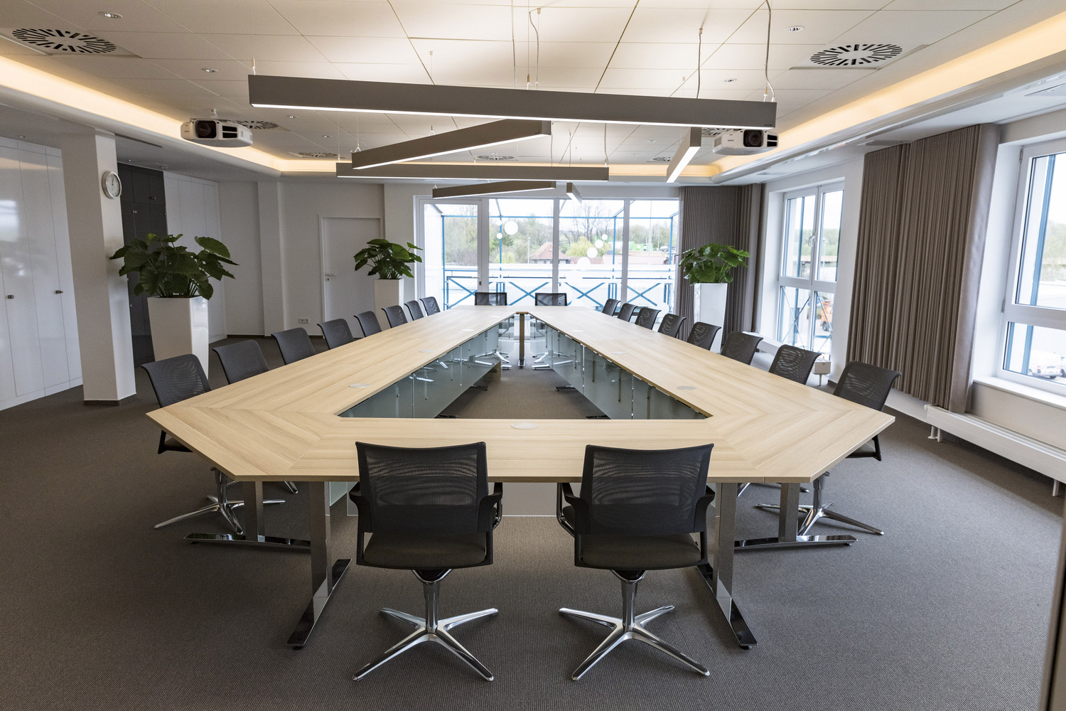 Bei der Neugestaltung des Konferenzraumes der Stadtwerke Wolfenbüttel wurde eine bedarfsgerechte Konferenztischanlage geplant und verbaut, die eine interne sowie externe Kommunikation unterstützt.